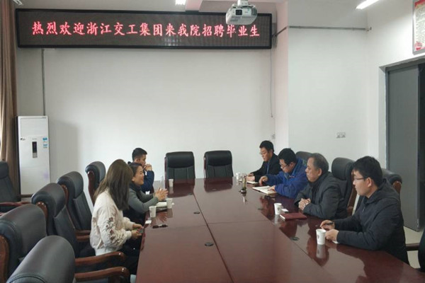 3月6日下午,浙江交工集团股份有限公司大桥分公司人力资源部副经理陈玲芳一行来我院招聘毕业生,并进行洽谈,院领导、教师和毕业班辅导员参加。会议在宁远楼A406会议室举行。