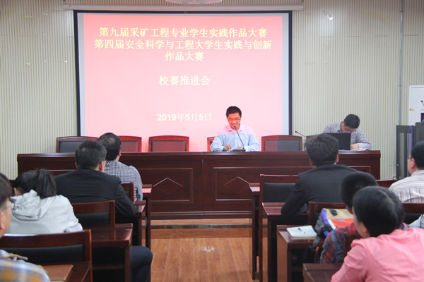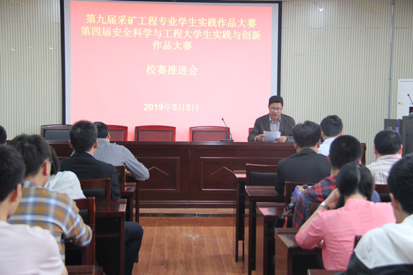 5月5日下午,能源与安全学院在宁远楼A410报告厅举行2019年采矿工程专业学生实践作品大赛和安全科学与工程大学生实践与创新作品大赛推进会。会议由学院党委副书记张向林主持。院领导、系主任、班主任、全体辅导员以及来自各个年级的近100名学生代表参加。