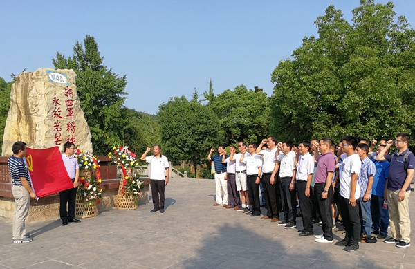 全体党员首先参观了新四军纪念林陈列馆,瞻仰了革命先烈的遗像和珍贵文物,共同感悟革命先辈们为理想而艰苦奋斗的革命精神。随后,大家来到纪念林,认真阅读着主路两边的碑文和题词,深入了解新四军的光辉历史,对英烈们的光辉事迹产生了深深的敬意。在“新四军精神永放光芒”的纪念石碑前,面对党旗重温了入党誓词。