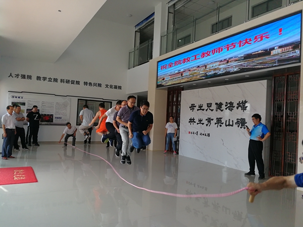 为庆祝第35个教师节,迎接中秋节,丰富我院教职员工文化生活,增强教职工团队意识和凝聚力,推动和谐校园建设,学院举办了教职工跳绳比赛活动,此活动也是纪念建院(系)70周年系列活动之一。