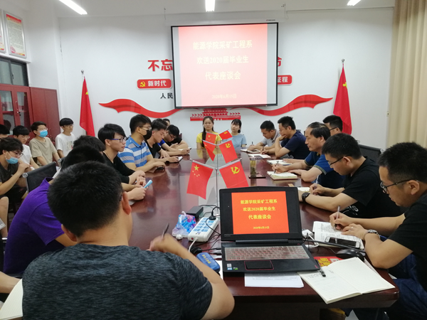 6月15日下午,能源与安全学院采矿工程系在A308会议室举行2020届采矿工程、交通工程毕业生代表座谈会。近20名本科毕业生代表参加了座谈会。座谈会由采矿系教工党支部书记、采矿工程系主任张向阳主持。学院党委书记华心祝、党委副书记张向林和部分教师参加了座谈会。