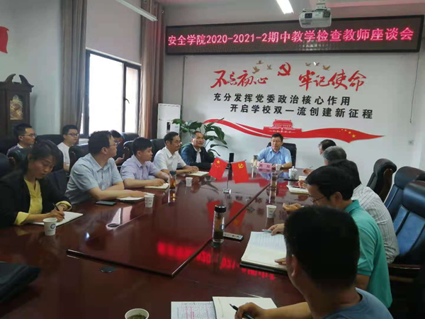 根据学校期中教学检查工作安排,5月24日下午,校纪委书记周旭出席在宁远楼A406召开的安全科学与工程学院教师座谈会。院党委书记华心祝主持会议。