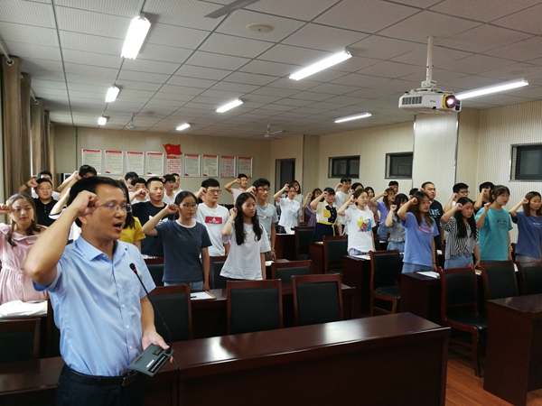 全体党员在金德的带领下,面向党旗,昂首挺胸,举起右拳,再次庄严宣誓。