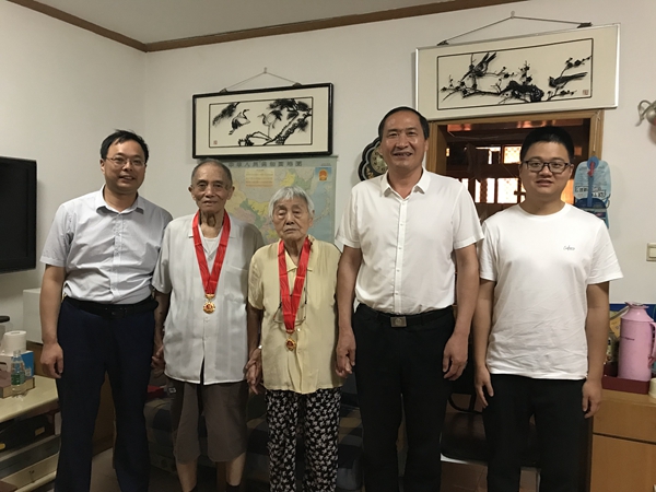 历经3个多小时的车程奔波,华心祝一行来到南京吴中立、马逸吟两位老党员教授的家中看望慰问,介绍了学校和学院发展现状,感谢两位老党员为学校和学院做出的贡献。吴中立和马逸吟是安全学科一对相辅相成的夫妻,生活中相敬如宾、家庭和睦,工作中相互支持,随时随地交流研讨教学、专业、学科等问题,发扬了严谨治学、无私奉献、甘为人梯的优良作风,为我校安全学科的发展作出了杰出贡献。拥有65年党龄的吴中立和63年党龄的马逸吟用实际行动践行了共产党人的初心使命,当把“光荣在党50年”纪念章挂在胸前时,吴中立激动地说:“感谢党,感谢组织关心,感谢学院经常惦记我们退休教师,我们将继续关注学校和学院发展并积极建言献策,继续发挥自己的余热,发扬党的优良传统,为党的事业添辉加彩。”