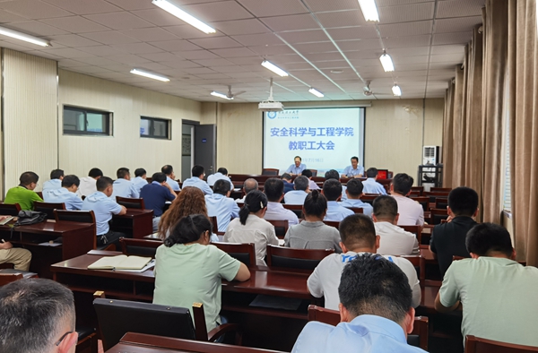 7月16日下午,安全科学与工程学院在宁远楼A410报告厅召开期末全体教职工大会,对学院2021年上半年工作进行总结,对暑期重点工作进行部署安排。会议由学院党委书记金德主持,学院全体教职工参加了会议。