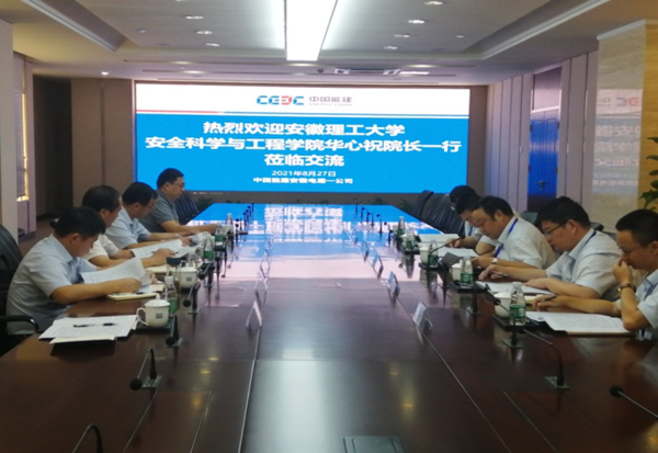 8月27日上午9:30,安全科学与工程学院院长华心祝、副院长刘健一行5人赴中国能源建设集团安徽电力建设第一工程有限公司(以下简称“电建一公司”)调研,校企双方共同签订了《人才培养、就业创业与科学研究基地合作协议》。