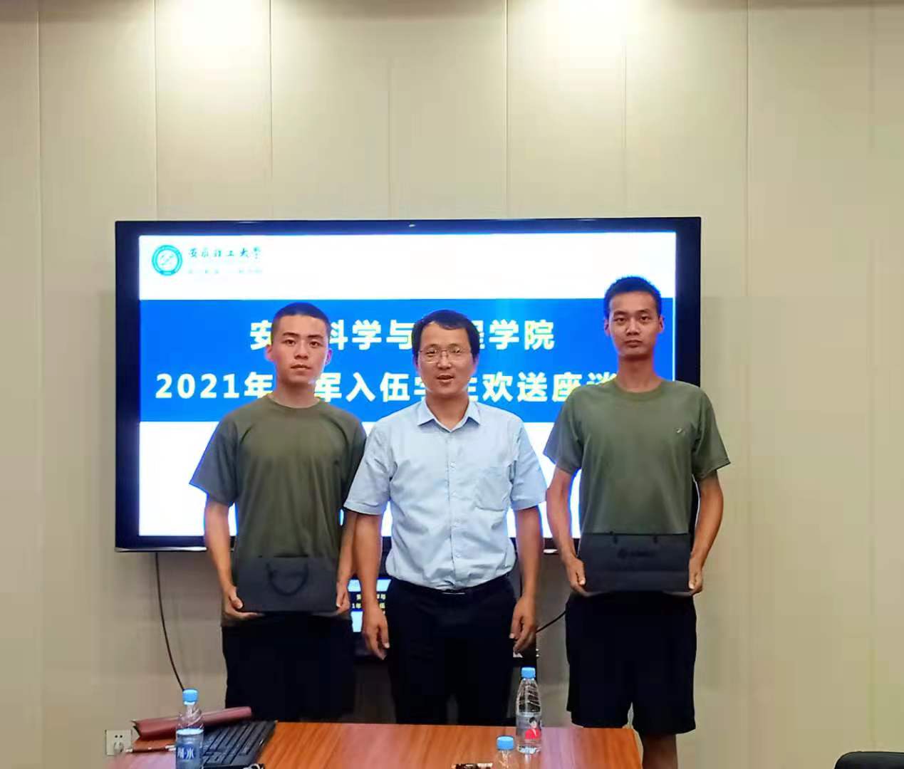9月7日下午,安全科学与工程学院2021年参军入伍欢送座谈会在宁远楼412召开。学院党委书记金德、副书记曹宣明、辅导员、参军入伍学生、退役复学“老兵”代表以及学生代表参加了本次欢送座谈会。