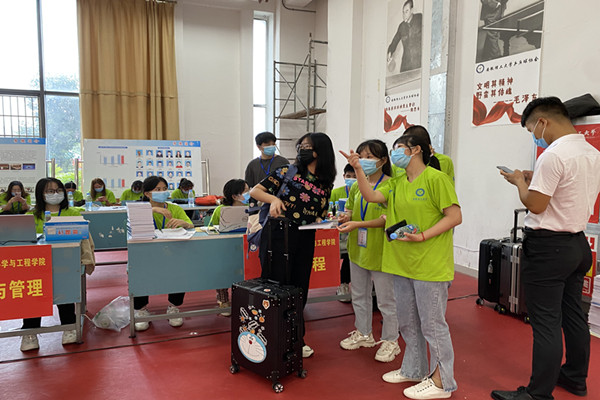 志愿者热情迎接新生(摄影:王媛媛)