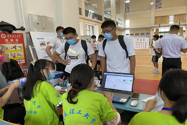 为新生办理报道流程(摄影:王媛媛)