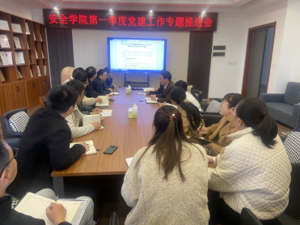 3月3日下午,安全科学与工程学院在宁远楼A412会议室召开2022年第一季度党建工作专题推进会。学院党委书记金德主持会议,学院各党支部书记、支部委员参加会议。