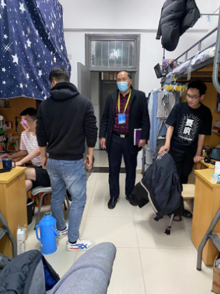 按《关于实施疫情防控工作包保责任制的通知》(校防控组〔2022〕19号)要求,制定了安全科学与工程学院领导班子成员包保年级班级责任制实施方案。4月11日-15日,学院领导班子成员根据包保年级、班级分工,广泛深入学生宿舍走访检查,落实落细领导包保责任。走访中,院领导、教学办、辅导员深入每一间学生宿舍,仔细查看学生网课学习状况、宿舍环境状况、学生精神风貌状况等,听取学生在校园封闭期间学习、生活、心理、学校后勤保障等方面的意见建议,与学生话家常、深谈心。叮嘱各位同学:一是要正确认识校园封闭管理的重要意义,要求同学们树立大局意识,服从学校学院疫情防控期间各项工作部署;二是学生党员、学生骨干要积极发挥先锋模范作用,在疫情防控大局中亮身份、做表率,积极畅通老师与学生之间的联系,遇到异常事件及时报告;三是要求全体学生听从学校安排进行常态化核酸检测,在校期间勤洗手、勤戴口罩,每天自觉今日校园平台健康打卡,确保数据真实准确;四是认真上好网课,严格遵守网课学习纪律,不迟到不早退,少玩游戏多看书;五是积极树立良好心态,养成良好的校园学习生活习惯,坚定必胜信念,同心同德抗疫。六是严格执行学校规定,全体学生疫情防控期间自觉不订外卖、不网购,减少不必要的外界接触。