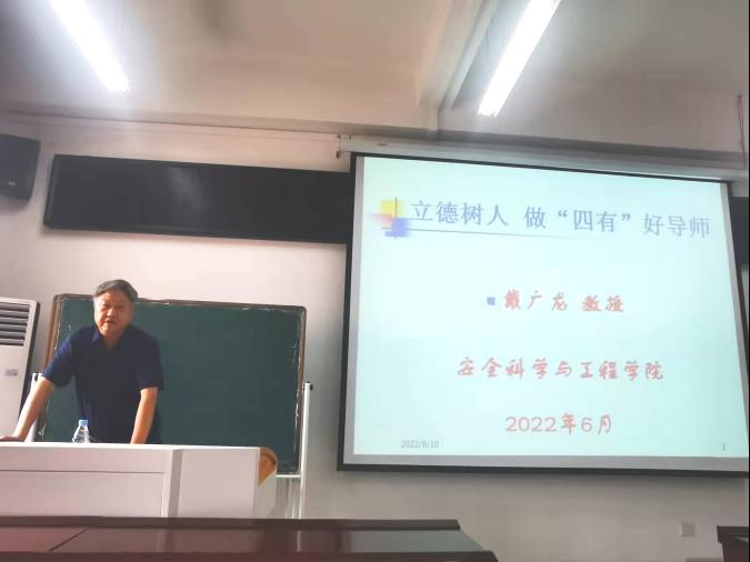 6月10日上午,戴广龙教授在宁远楼A302为安全科学与工程学院教师做思政教育讲座-立德树人,如何做“四有”好导师专题报告。