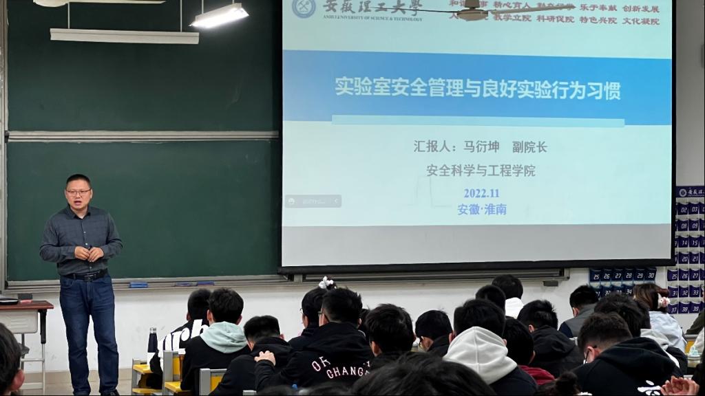 为加强实验室安全管理,提高实验室人员安全意识、培养研究生良好的实验行为习惯,2022年11月23日上午,安全科学与工程学院马衍坤副院长在明理北216教室作了题为“实验室安全管理与良好实验行为习惯”的报告,报告会由安全学院张雷林教授主持,采用现场及线上会议的形式召开。2022级安全专业研究生约160人参加了线下报告会,2020级及2021级全体安全专业研究生参加了线上报告会。