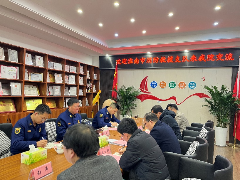 2月20日下午,淮南市消防救援支队高工李德成、防火监督科科长卢晗等一行3人来我院交流座谈。安全科学与工程学院院长陆伟,副院长刘健、聂士斌,消防与应急系主任彭伟等代表学院对消防救援支队一行表示热烈欢迎。