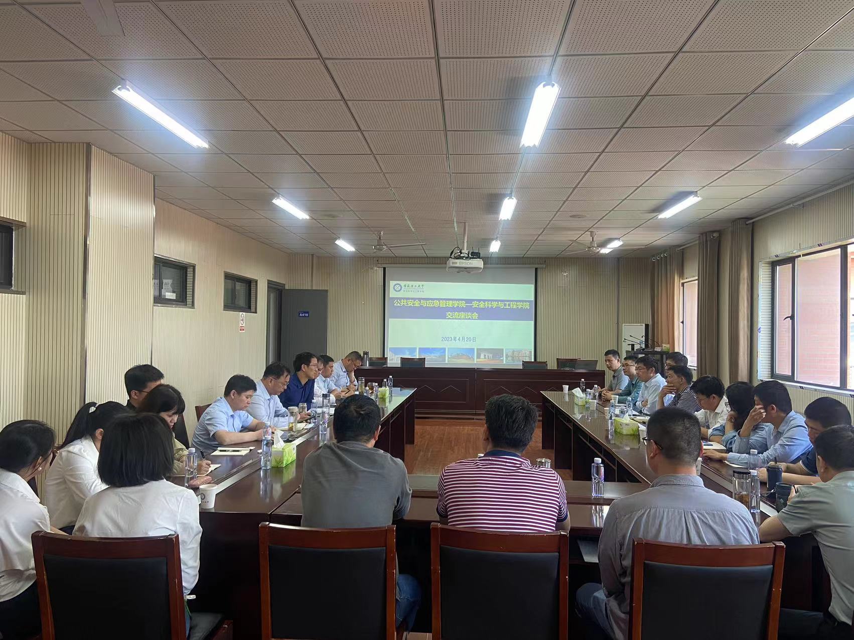 4月20日上午,公共安全与应急管理学院院长顾成杰等一行16人来安全学院调研交流,在宁远楼A410会议室举行交流座谈会。学院党委书记金德、院长陆伟等党政领导班子成员、系主任、教学办秘书、实验员参加了会议。会议由金德主持。
