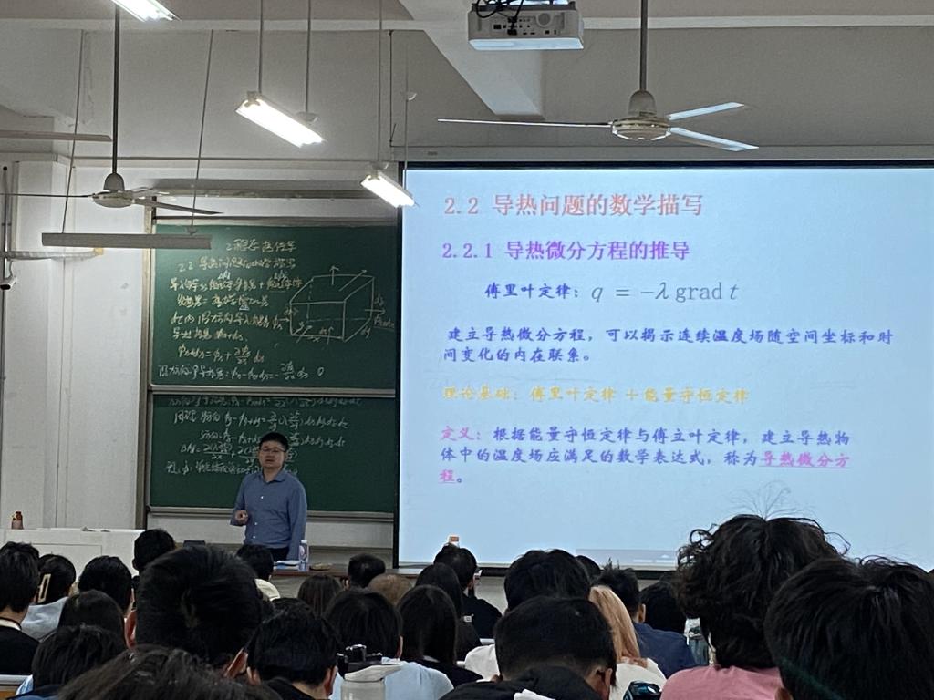 5月8日,安全工程系唐明云教授作了《传热学》的示范教学。唐老师以生活中的传热现象导入新课,结合精美的板书深入讲解了“傅里叶定律”及“导热问题的数学描写”。教学过程中,唐老师层层递进,理论讲解透彻,重难点突出,并适时融入课程思政,传授专业知识的同时,培养同学们的职业素养。唐老师采用启发式、问题探讨式、趣味式等多元化的授课方式,将晦涩难懂的理论及公式推导讲授地生动多彩,让人印象深刻,受益匪浅。参加观摩的教师们表示,在课堂教学设计、教学方法策略和增强教学互动性等方面受益良多。