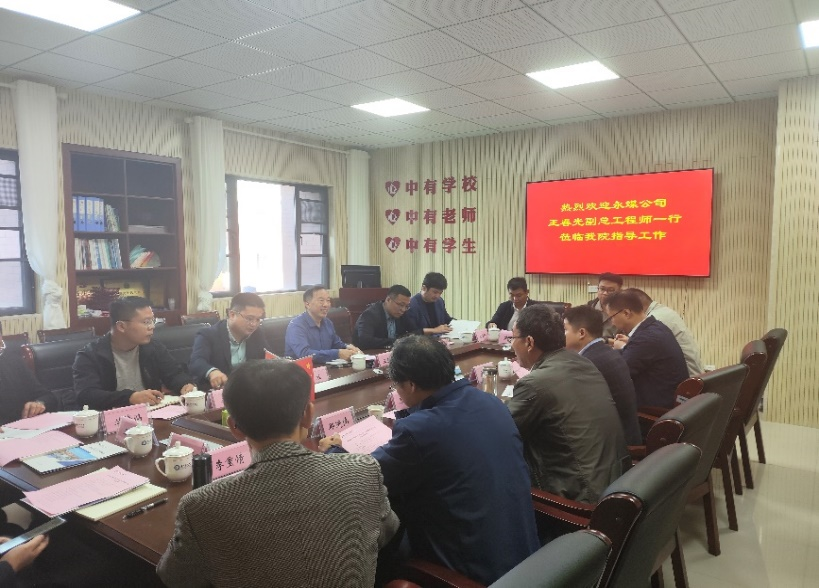 唐明云对王春光一行来院调研表示热烈欢迎,并简要介绍了学校及学院的历史沿革、专业设置、学科发展、人才培养与未来规划等发展情况。王春光对学院的热情接待表示感谢,介绍了永城煤电集团有限责任公司及车集煤矿瓦斯防治方面的情况和遇到的难题。双方就关于煤矿瓦斯卸压增透技术和装备等方面进行了深入交流与讨论。