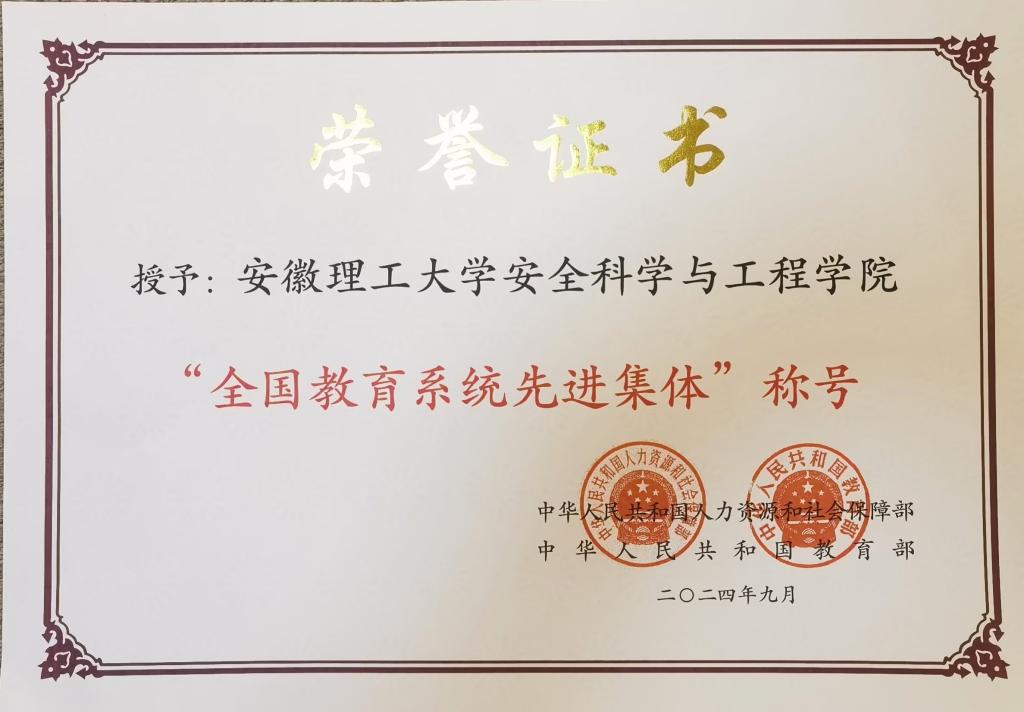 会议对585个全国教育系统先进集体、716名“全国模范教师”、895名“全国优秀教师”、80名“全国教育系统先进工作者”、99名“全国优秀教育工作者”进行了表彰,我校安全科学与工程学院荣获全国教育系统先进集体。