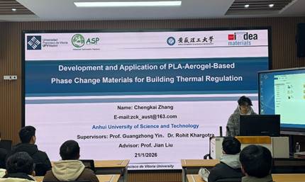 1月21日下午,安全科学与工程学院在宁远楼A108会议室成功举办“2026年研究生学术论坛——西班牙访学学术成果汇报专场”。论坛由全方凯老师主持,学院部分师生参与。