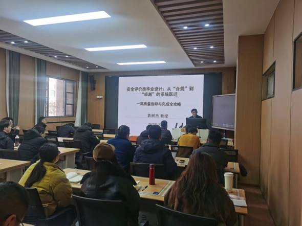 袁树杰教授以“高质量指导安全评价类毕业设计”为题,结合实践经验,详细解析了选题、方案设计、报告撰写等全流程,并提出了科学选题的“五大原则”和“真题真做”“真题深做”的实践路径。