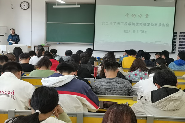 4月9日上午,安全学院优秀毕业生、山西金晖万峰煤矿有限公司副总工程师高杰、罗晓敏夫妇,应邀作了题为“爱的力量”励志事迹报告。报告会在天工南316教室举行,由安全学院党委副书记金德主持,两个学院近150名师生聆听了报告。