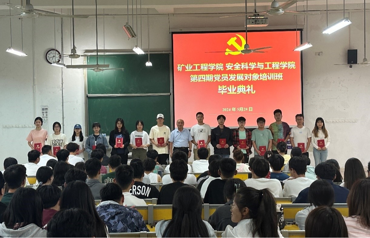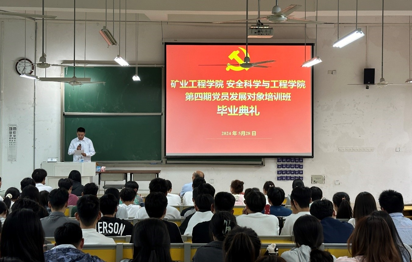 5月28日晚,矿业工程学院、安全科学与工程学院分党校在明理105教室举行第四期党员发展对象培训班结业仪式。矿业工程学院党委书记、分党校校长盛鹏飞出席结业典礼,典礼由安全科学与工程学院党委副书记曹宣明主持,两学院辅导员及176名学员参加结业仪式。