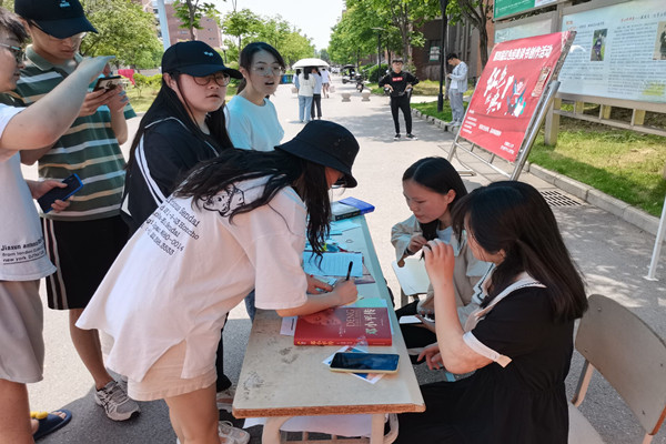 开展红色经典好句分享活动。5月10日至5月12日,安全学院在仁苑食堂门口开展了为期3天的红色经典好句分享活动。活动现场发放宣传单500余份,征集红色经典好语句400多条,现场制作并赠送精美书签300多个。