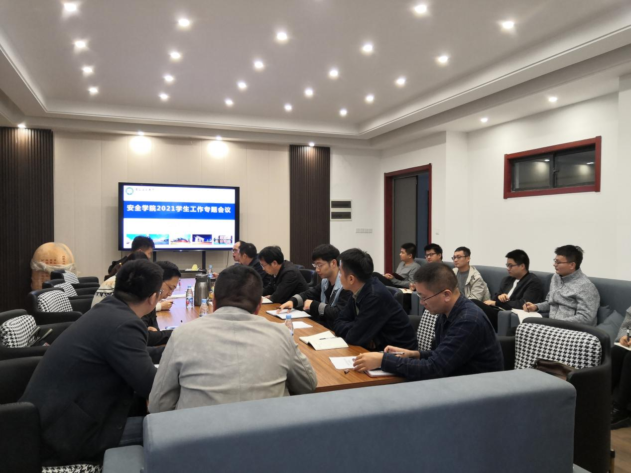 10月15日上午,安全科学与工程学院在宁远楼A412召开2021年学生工作专题会议,院党委书记金德、院长华心祝等领导班子、全体辅导员和班主任参加会议。