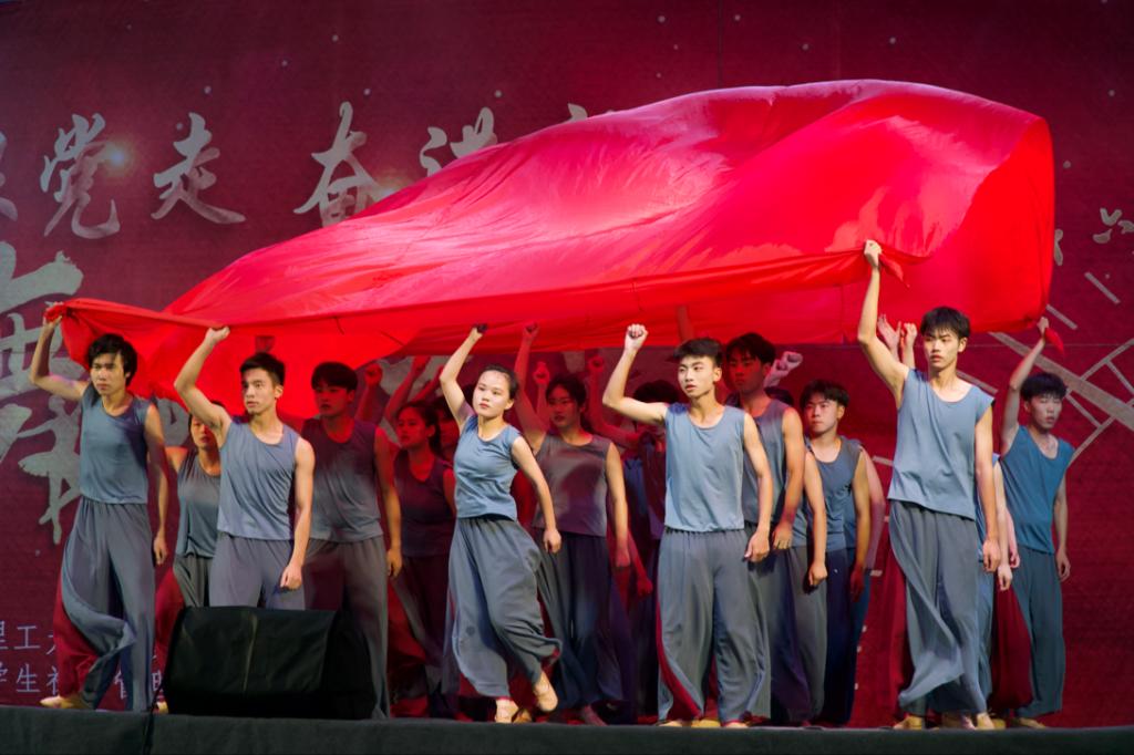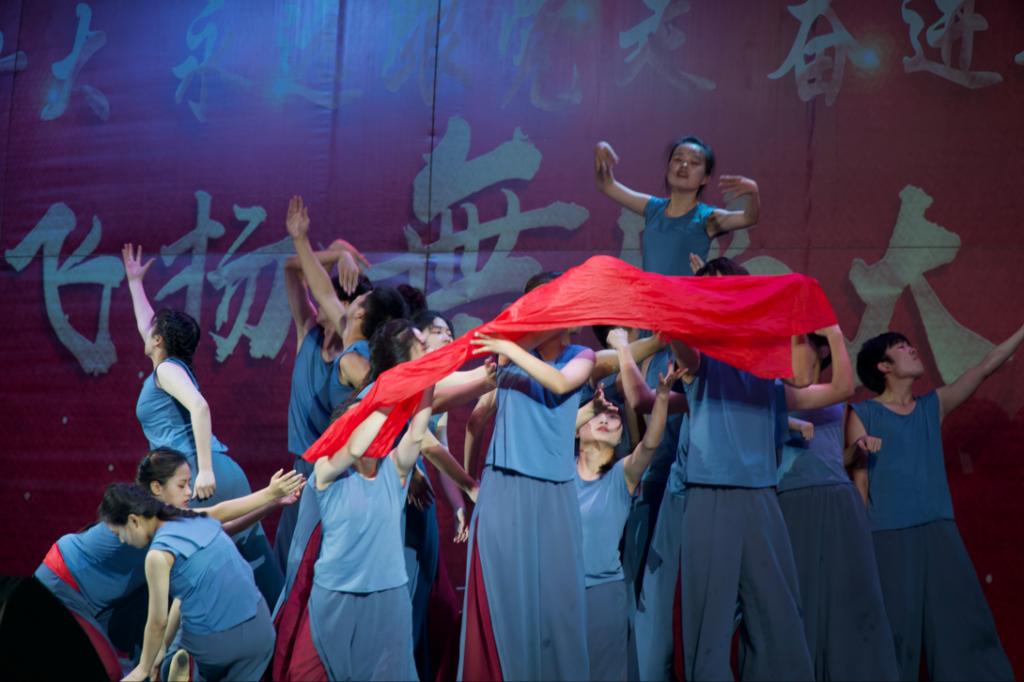 本次比赛,学院舞蹈队选取的舞蹈是《我心中的红》,她讲述了在革命战争年代,一群不怕死不怕苦的人,在心中信仰的指引下,引导人民群众走过战火硝烟,走过赤地千里,走过探索迷茫,最终与广大群众一起战胜了苦难,生活一片光明。
