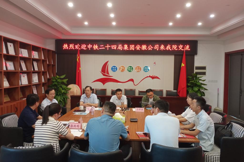 9月14日下午,中铁二十四局安徽工程有限公司党委副书记文泽等一行6人来安全科学与工程学院开展合作交流并招聘毕业生。交流会在宁远楼A412举行,学院党委书记金德、副院长刘健、党委副书记曹宣明等参加了交流会。