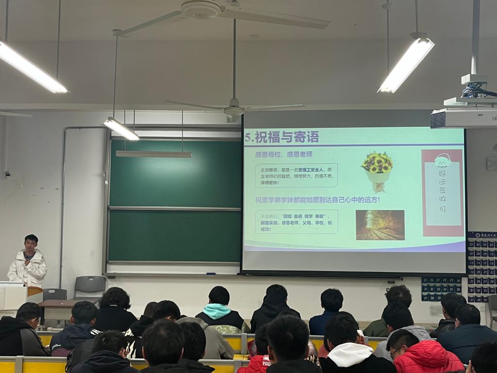 11月30日晚,安全学院在明理北414教室举办成长成才交流会。来自学院2019级推免到清华大学、中国科学技术大学、重庆大学的三位优秀同学分享了自己的学生成长经历与感悟。近200名低年级同学参加交流会。