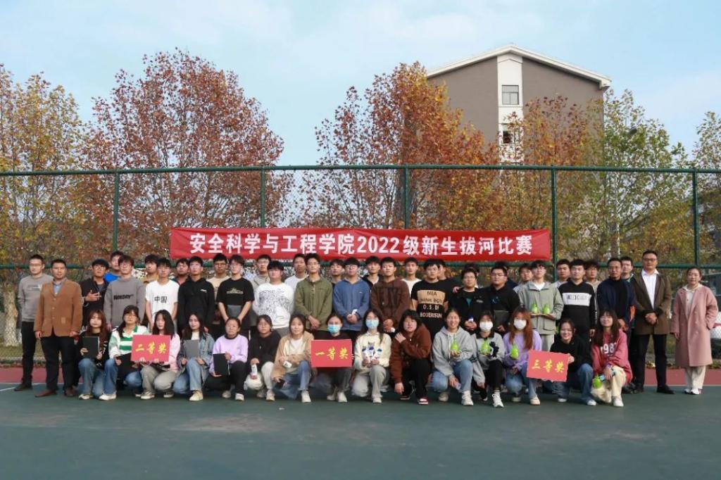 为帮助新生尽快融入校园集体,增强班级凝聚力。安全科学与工程学院于11月26日至27日在仁爱体育场举行新生拔河比赛。