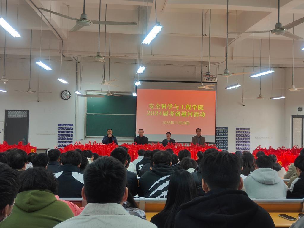 为进一步增强学院考研学子的备考信心,鼓舞考研士气,11月28日,安全学院在天工106开展考研慰问活动。学院领导班子、毕业班辅导员、2024届全体考研学生参加慰问活动。