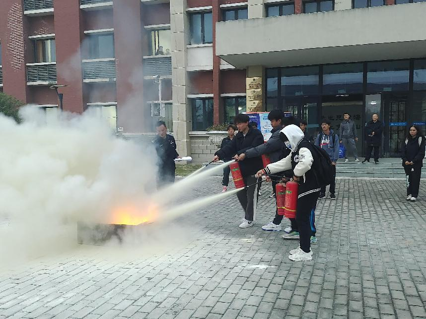 11月12日,随着火灾警报响起,工作人员按照演练方案引导学生快速疏散,学生按照要求弯腰屈身,用毛巾、衣、袖口等掩住口鼻,有序、迅速地撤离到安全地点,并清点人数。保卫处彭广峰老师向学生讲解了灭火器的操作方法,现场示范了干粉灭火器的使用操作,师生们现场参与消防器材灭火操作演练。