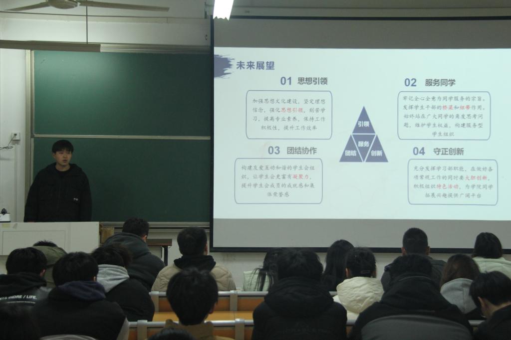 会上,各学生组织骨干就2023年个人在政治态度、道德品行、学习情况、纪律作风、工作成效等方面的表现,部门的工作开展情况进行述职汇报,总结工作成效,分析存在问题,并对下一年度工作进行展望规划。