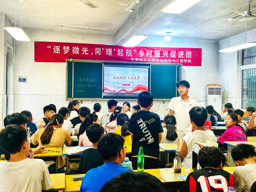 7月10日至7月15日,安全科学与工程学院“逐梦微光,同‘理’起航”校级重点团队在颍上县赛涧回族乡中心学校围绕科普宣传、红色教育、义务支教、安全教育等主题开展暑期三下乡社会实践活动。