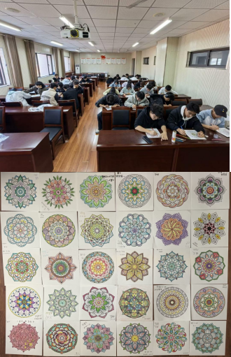 为引导学生表达内心,释放压力,舒缓焦虑,3月23日,学院在宁远楼A410教室开展了一场别开生面的曼陀罗心理绘画活动,同学们通过画笔用不同的色彩勾勒出自己心中的曼陀罗,或展现内心的宁静平和,或透露着对未来的憧憬渴望,或宣泄着内心中的抑郁躁动。这些绘画不仅是艺术的呈现,更是同学们在繁忙学业中探寻自我、舒缓压力的珍贵记录,见证着心灵的成长与疗愈之旅。