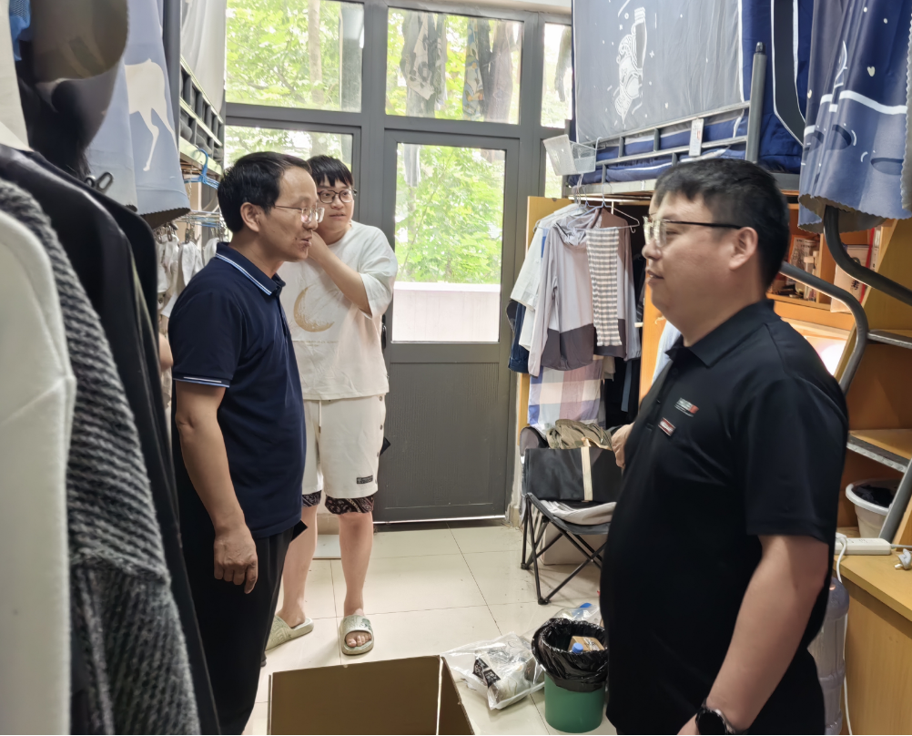 在毕业生离校之际,为表达对毕业生的诚挚祝福,6月12日下午,安全学院党委书记金德、副院长江丙友(主持)等学院领导班子前往学生宿舍,走访慰问2025届毕业生,用暖心话语与贴心关怀为即将奔赴新征程的同学们壮行。