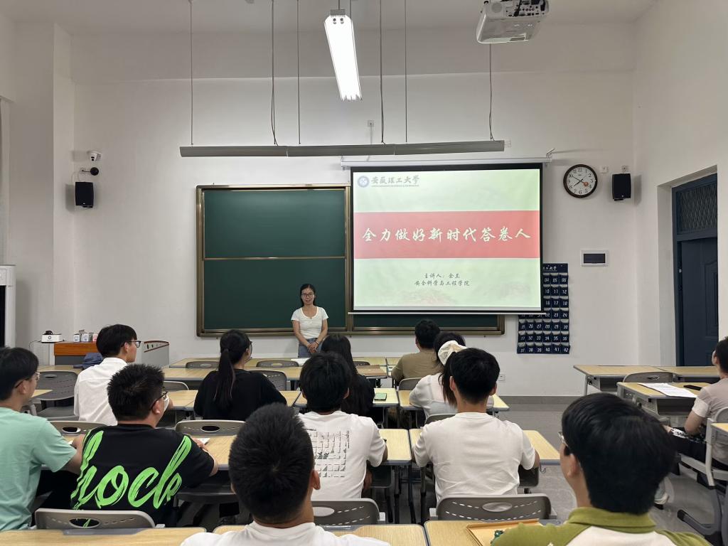 6月25日,安全学院学生第二党支部书记余兰在明德楼106讲授了题为“全力做好新时代答卷人”的专题党课。党课结束后,党员们进行了集体宣誓,同时也纷纷表示要用实际行动丈量祖国大地,要用内心的感知把握时代脉搏,让青春在不懈奋斗中绽放出绚丽的光彩。