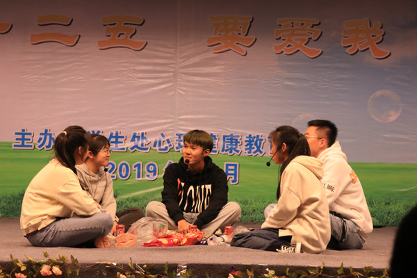 据悉,本届大赛以“要爱我(12.5)”为主题,经复赛选拔全校共有7件作品挺进决赛。我院心理情景剧作品《花开》讲述了大学生伊一和母亲因日积月累的矛盾而心生嫌隙,从而引发了一系列心理困惑,最终在老师和同学的心理健康疏导下冰释前嫌,回归亲情的故事。决赛现场安全19-4班参演同学们表演真实贴切、幽默诙谐,形象生动地向评委和观众们展示了青春征程中弥足珍贵的亲情和友情,现场反响十分热烈。