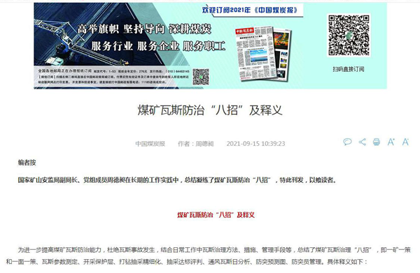链接:《煤矿瓦斯防治“八招”及释义》http://www.ccoalnews.com/news/202109/15/c149000.html