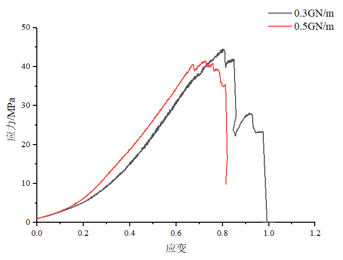 2. 双轴变刚度压缩试验:不同刚度下岩石双轴抗压强度试验、双轴全过程试验可以检测出岩石双轴抗压强度、残余强度、弹模、泊松比等特征参数;得到岩石或混凝土的全应力-应变曲线及多种相关曲线。