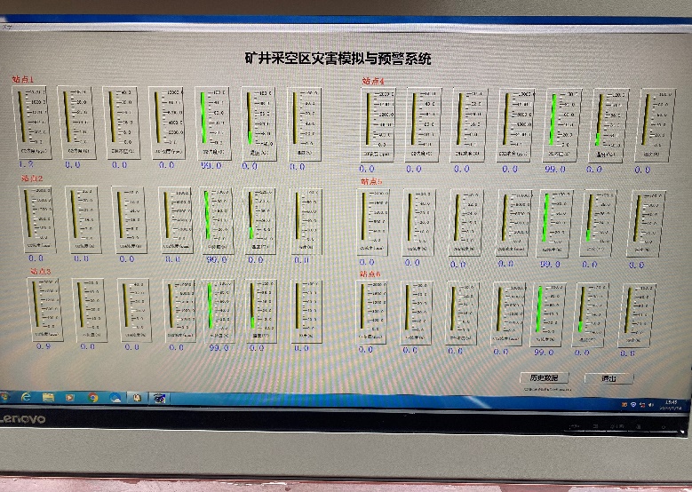 图1 采空区灾害模拟实验系统实物图 (矿业与安全学院大型实验室夹道) |