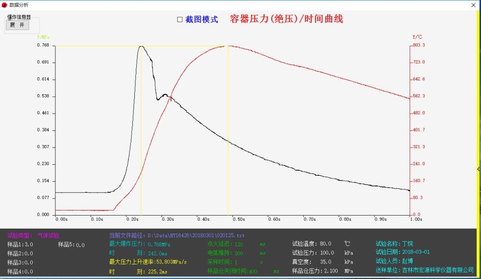 5. 爆炸压力采样时间间隔:0.2ms,最大采样时间:6S