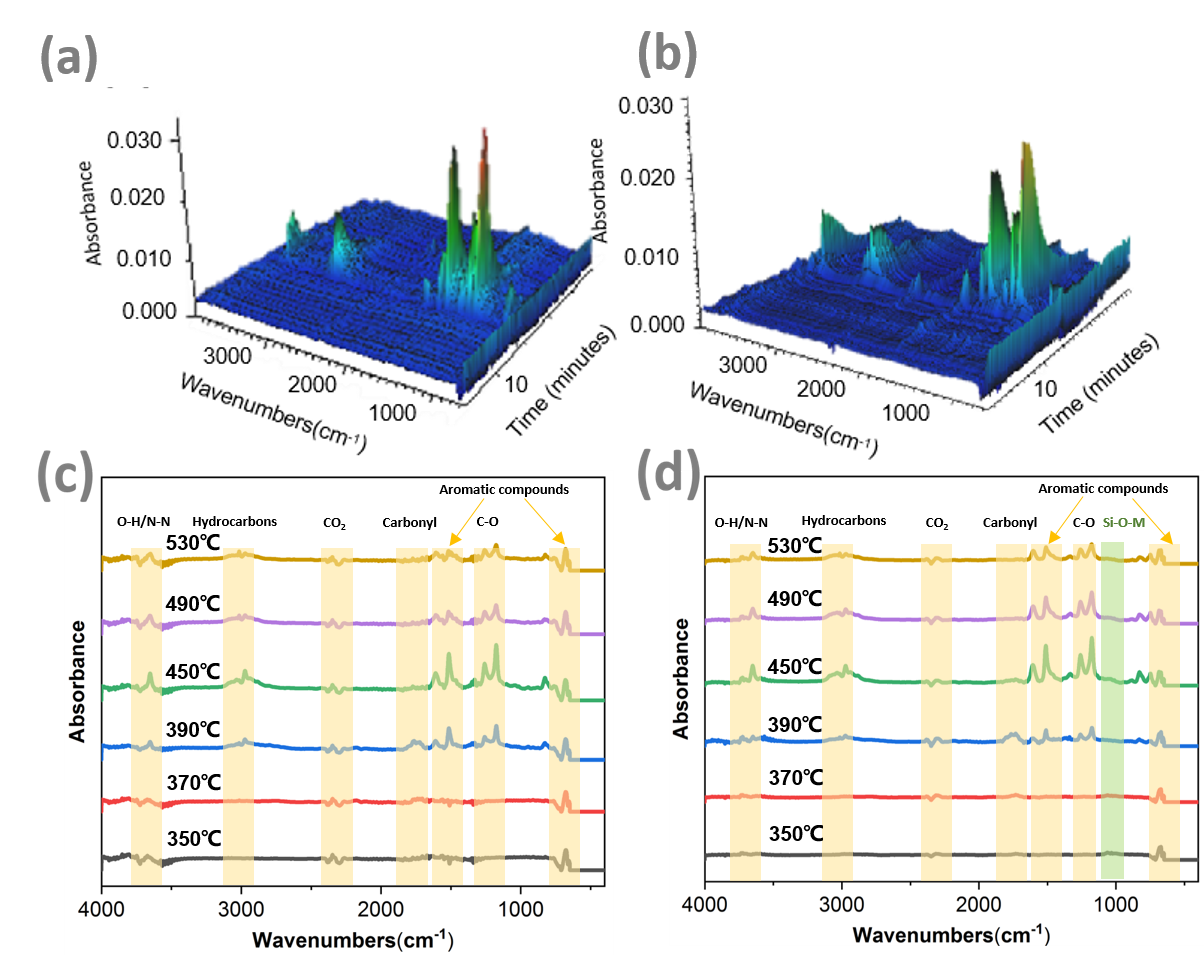 图1 TG-IR 3D谱图及不同温度点红外光谱