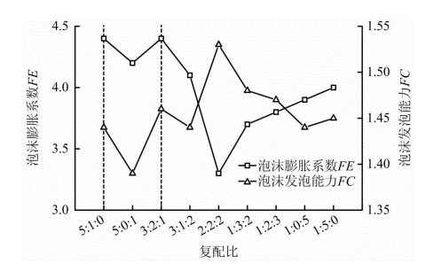 图2 不同复配比发泡溶液发泡性能评估