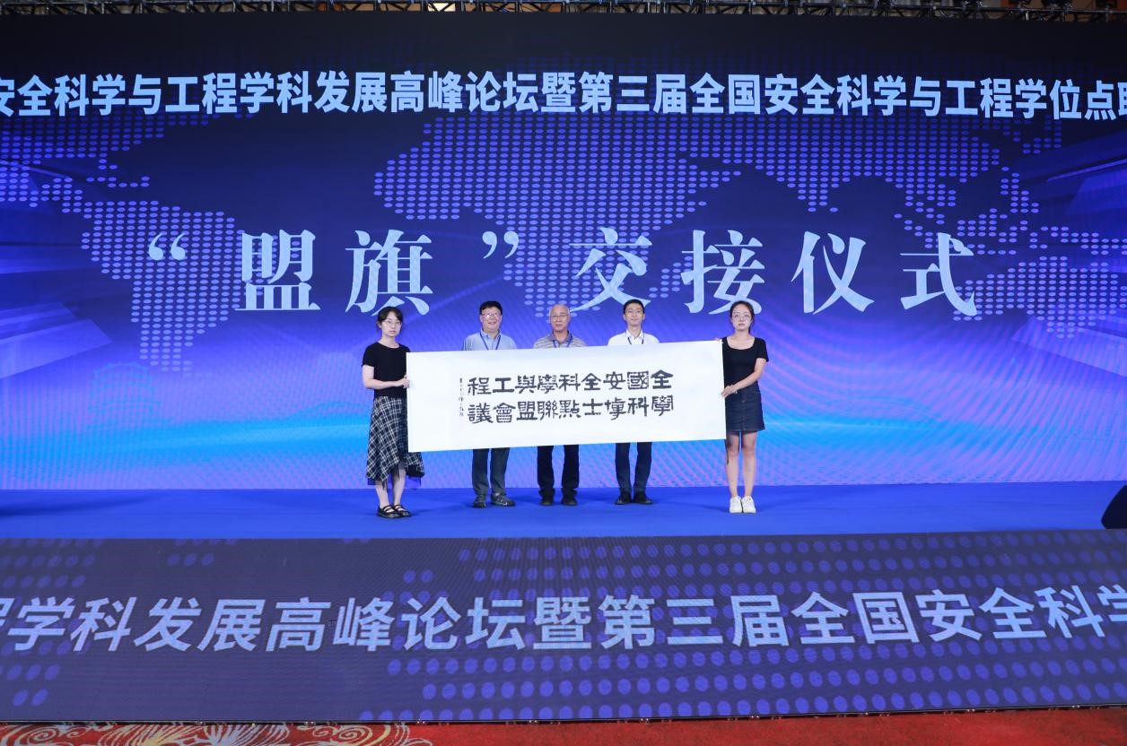 “盟旗”交接仪式上,郑明东代表学校向下一届会议会议单位清华大学和中国石油大学(北京)交接盟旗。清华大学工程物理系教授张辉代表下届会议单位发言,他感谢大会将下届会议举办权交给清华大学及中国石油大学(北京),期待明年同学界同仁相聚北京,进一步提升安全学科专业性,特别是综合性安全领域的开拓与探讨,热情地期待下届论坛大家能够再次相聚,共同携手促进全国安全科学与工程学科的发展。