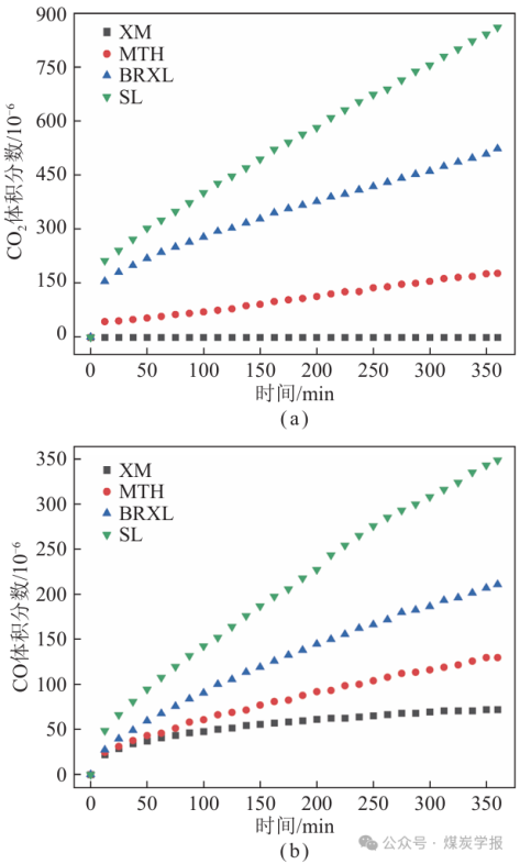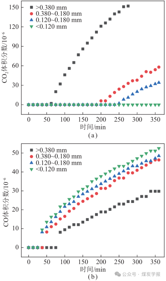 (4)原煤本身活性位点含量及其在破碎、筛分、转移等操作中发生的预先氧化行为是导致普通煤体很难观测到常温氧化现象的原因。