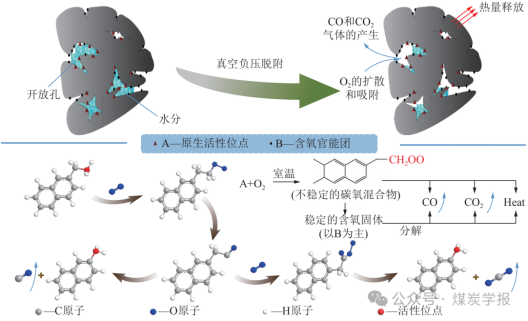图12 煤脱附过程中活性位点的暴露和氧化示意