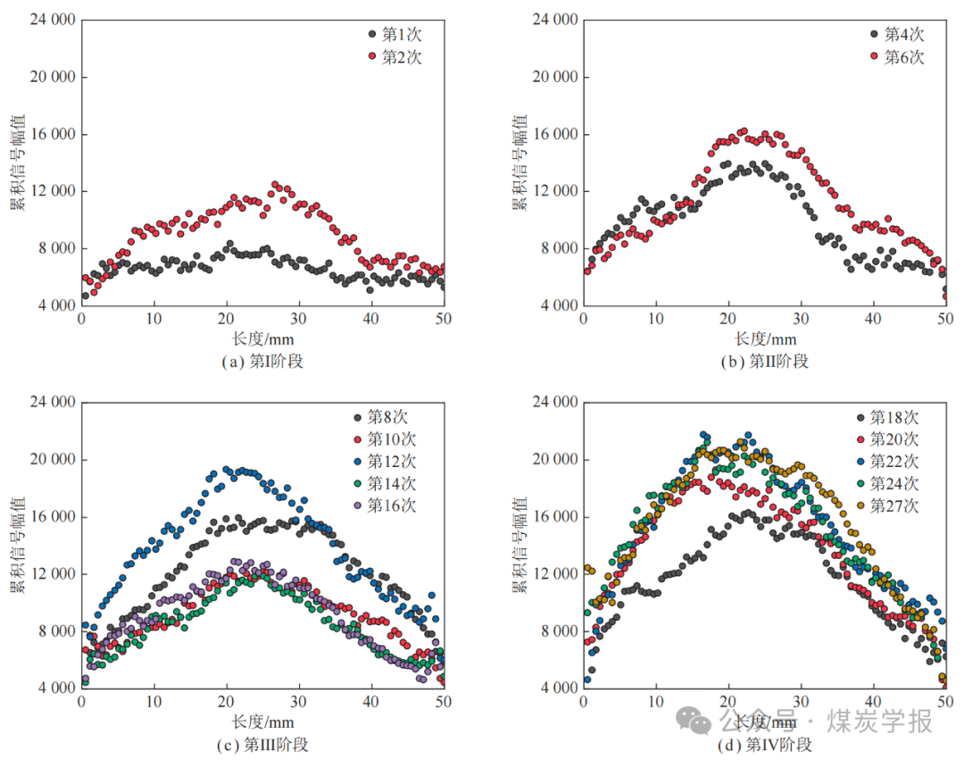 图 17 一维条件下震动载荷冲击后煤样的 MRI 信号变化